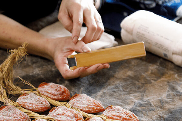また、地元特産の伊自良大実柿を使った干し柿にクリームチーズを詰めたスイーツの開発や干し柿のネット販売も行い、全国から注文を受けています。