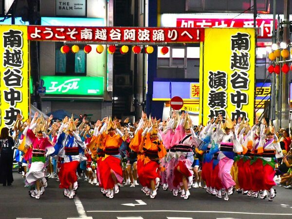 夏には日本三大阿波踊りのひとつである、南越谷阿波踊りが開催され、夏の風物詩として親しまれているほか、冬にはいちご狩りも楽しめるなど、四季折々の様々な見どころがあります。