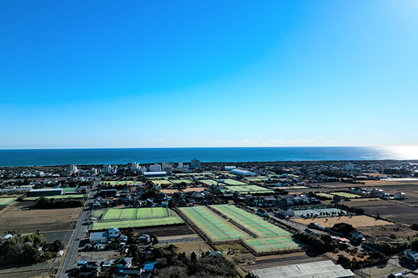 白子町は、千葉県東部の九十九里浜に面した自然に恵まれた町で、年間を通して温暖な気候と穏やかな環境が特徴です。町の面積は27.50平方キロメートル、人口は約1万人。海と田園風景が広がり、落ち着いて過ごせる住みやすい環境が整っています。町内には300面を超えるテニスコートがあり、全国大会も開催されるなど、スポーツが盛んな町として知られています。また、サーフィンやグラウンドゴルフなど、さまざまなスポーツやレジャーを楽しむことができます。さらに、九十九里浜で唯一の温泉地である白子温泉は、「美肌の湯」としても知られ、多くの人に親しまれています。
