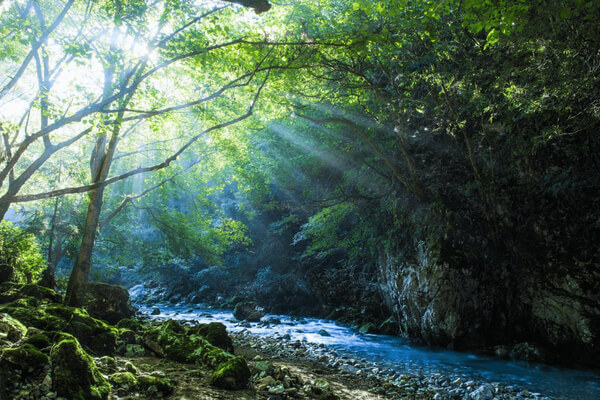 岐阜県山県市は約8割が森林に覆われた自然豊かなまちで、名古屋から車で約1時間とアクセスも良好です。清らかな水が流れる円原川・神崎川では、夏になると川遊びやキャンプを楽しむ人々で賑わい、木々の間から差し込む幻想的な光芒が訪れる人の心を癒します。近年では、自然の中でととのう「サウナ」も人気を集めており、アウトドアとリラクゼーションが融合した新しい楽しみ方が広がっています。